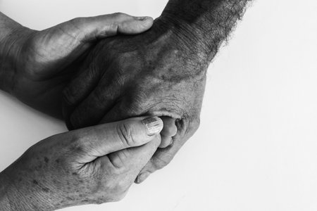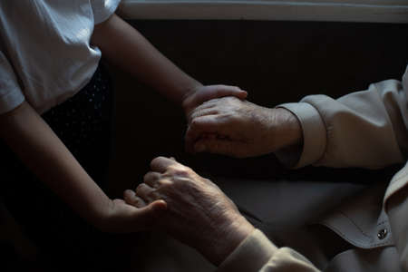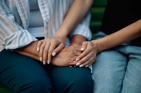 Young hands caressing hands of an old woman