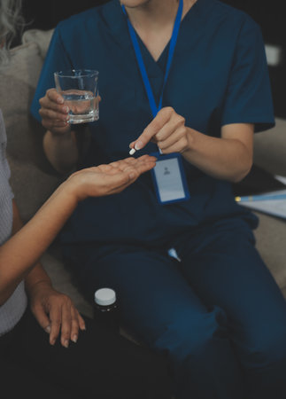 Doctors are giving advice on medication to patients in hospital examination rooms, treating diseases from specialists and providing targeted treatment. Concepts of medical treatment and specialists.