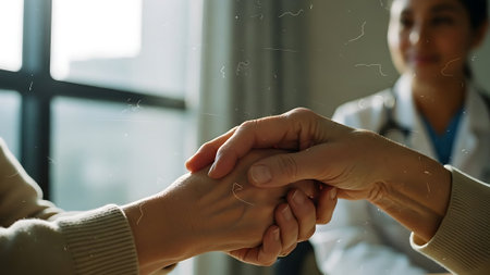Doctor holding patient's hands offering comfort and support