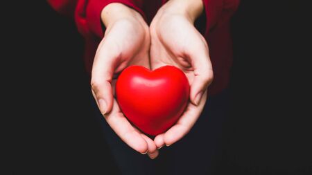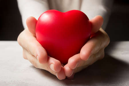 Hands holding a red heart, heart health, and donation concepts