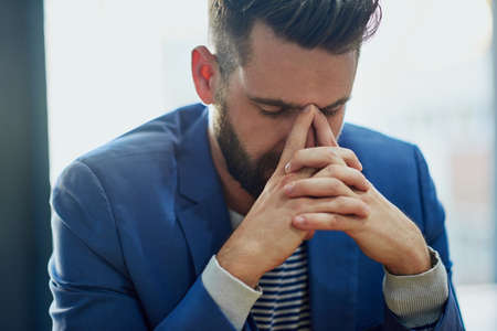 Success has a price. a young businessman looking stressed out while working in an office.