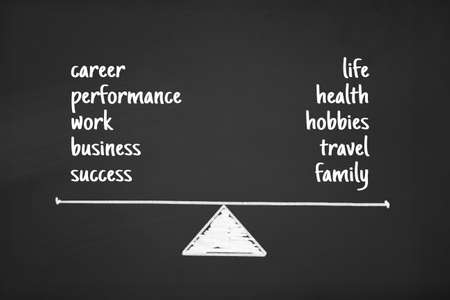 Balance of health and career drawn with white chalk on a blackboard