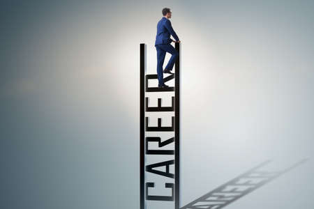 Businessman climbing career ladder in business concept