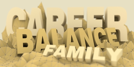 Low poly mountains landscape. 3d illustration. Polygonal mosaic background. Career balance family words