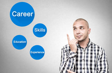Business, Technology, Internet and network concept. Young businessman working on a virtual screen of the future and sees the inscription: Career opportunities
