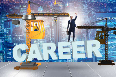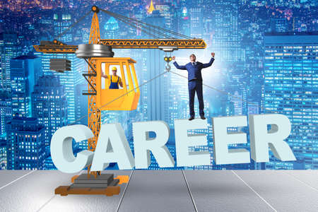 Businessman in career progression concept with crane