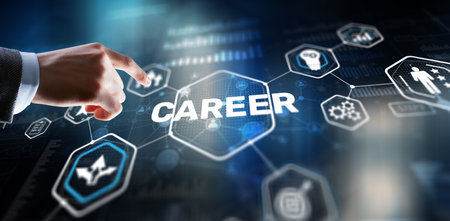 Businessman hands touching CAREER sign on virtual screen as career concept.