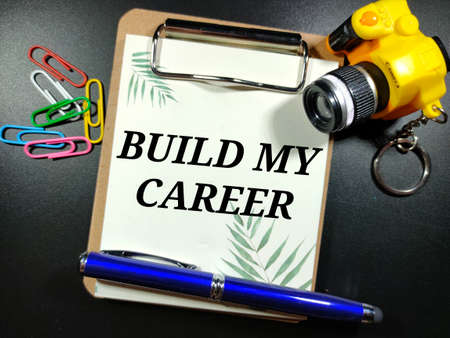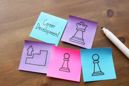 Career development is shown on a business photo using the text