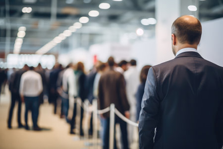 Abstract blurred people at exhibition hall of expo event trade show. Business convention show or job fair. Business concept background