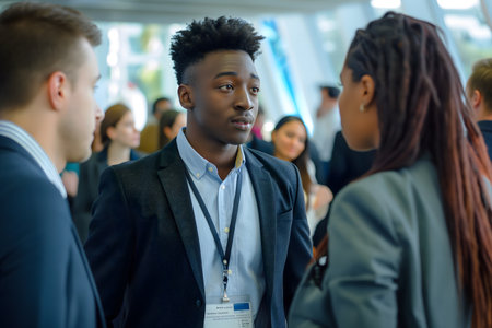 Vibrant exhibition center a dynamic trade fair with modern booths and engaged visitors