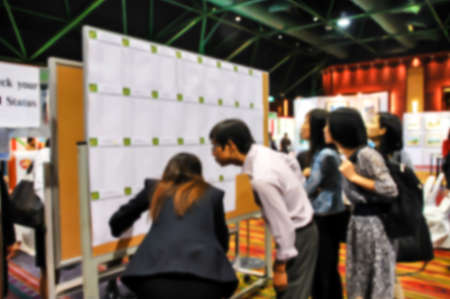 Abstract blurred people at exhibition hall of expo event trade show. Business convention show or job fair. Business concept background.