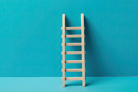 ladder on bright blue colored wall, in the style of dark blue background, concept minimalism, by ai generative