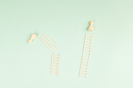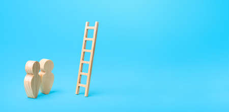 Two people connect by a ladder, building a bridge between men, separation and connection concept, meeting to overcome boundaries