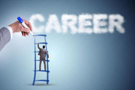 Creative career development and professional drawing career path. Pencil ladder concept for career growth and business success