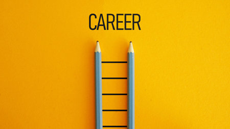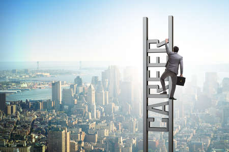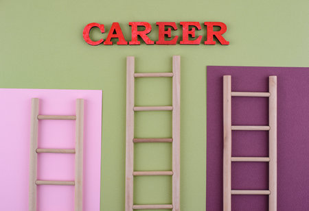 Personal development and Business career goals. Step by step concept. Ladder leading to career target