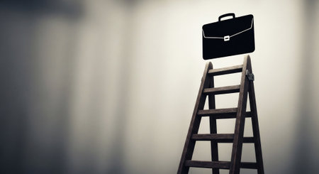 An image of a briefcase floating above a wooden ladder suggesting business goals and career development.