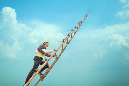 Metaphorically, a ladder leaning on the clouds tries to reach the sky.
