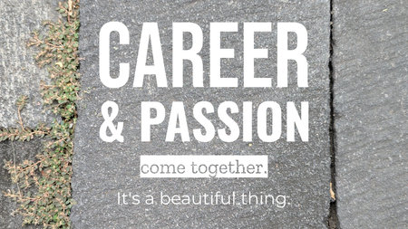 Photo shows a stone tile with small green plants growing along the edge. The text CAREER and PASSION come together. It's a beautiful thing. is centered on the stone, suggesting a solid foundation.
