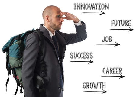 CAREER PATHS text in block of quotes. Businessman doing paperwork A career path is a sequence of jobs that leads to your short- and long-term career goals