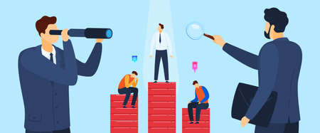 Recruiting people flat vector illustration, cartoon hr manager characters hiring recruits employees, recruitment process background