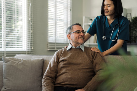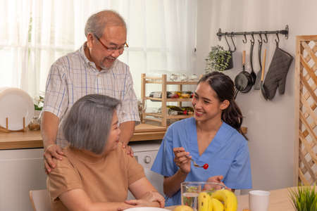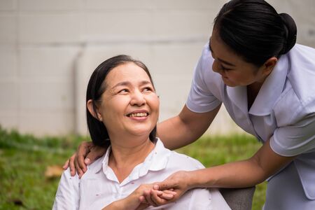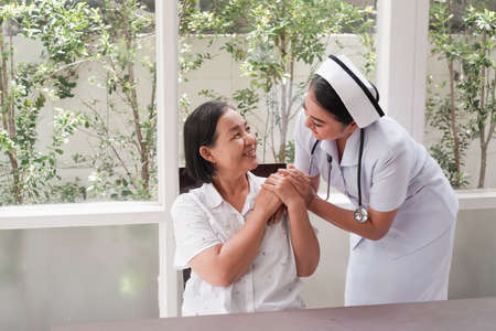 asian Female nurses take care of senior woman at home