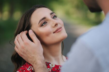 Close up portrait of young woman with her beloved man