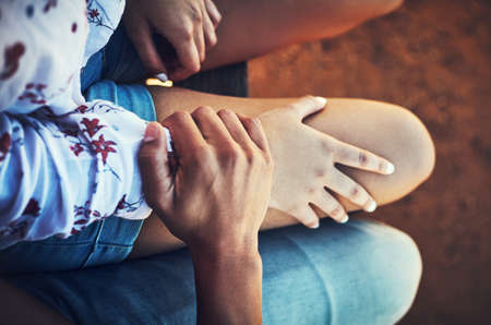 Detail of human hand's held by another person
