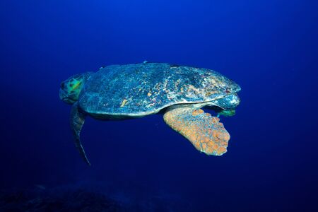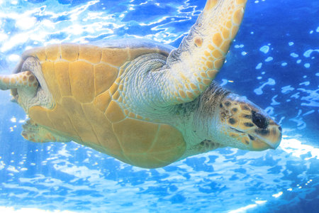 Loggerhead sea turtle (Caretta caretta), also known as the loggerhead. Wild life animal.