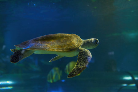 Giant Sea Turtle swimming in a huge aquarium at Sea Liife Ocean World Bangkok