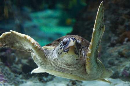 Sea turtle seen at the Aquarium in the Kyiv Aquarium