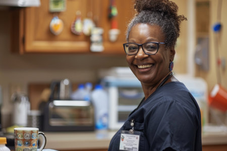 A cheerful healthcare professional exudes warmth and dedication in a hospital setting, embodying compassion and teamwork to enhance patient care and experience.