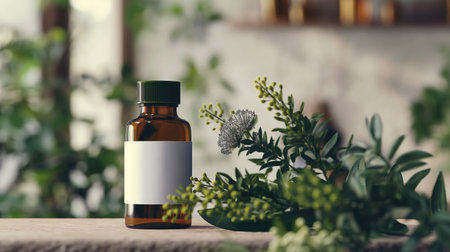 Bottles filled with essential oils showcase a variety of wildflowers, creating a tranquil and rustic atmosphere perfect for natural healing and wellness pursuits.