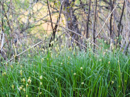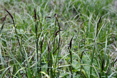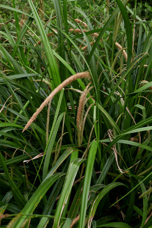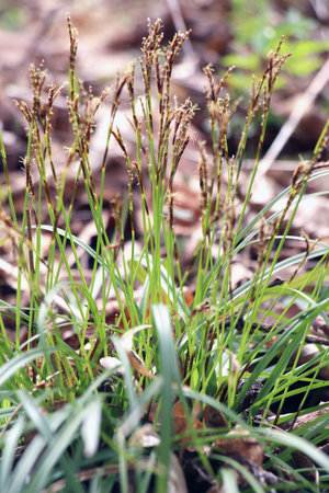 Hairy sedge (Carex pilosa) grows in the wild in the forest