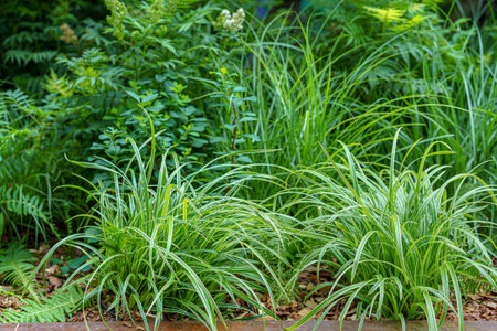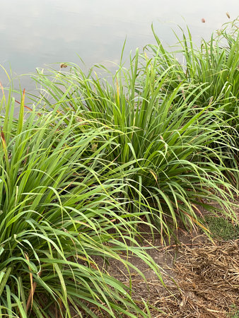 Vibrant and lush ornamental grass showcases long, delicate green leaves that add a fresh touch to modern landscapes and gardens, enhancing aesthetics and tranquility.