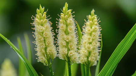 Beautiful green grass flower or poaceae in the garden for nature background or texture.