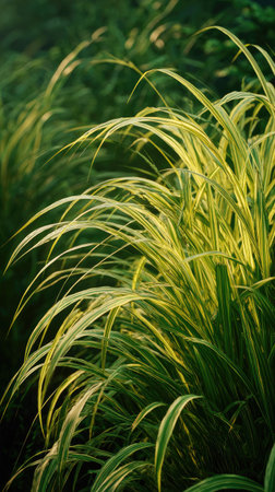 Vibrant and lush ornamental grass showcases long, delicate green leaves that add a fresh touch to modern landscapes and gardens, enhancing aesthetics and tranquility.