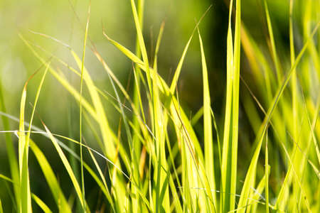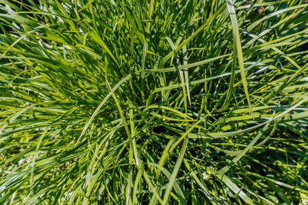 Fresh and green grass in the sunshine on a spring day