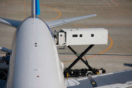 Kansai, Japan Oct 27,2017 : Cargo containers loaded into an airliner for cargo and baggage in Kansai International Airport.