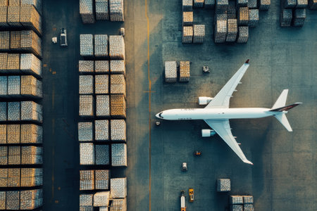 Illuminated Cargo Bay: Rows of Packages in a Sunlit Plane Ready for Transport