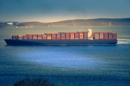 Vladivostok, Primorsky Krai. Seascape with a large container ship.