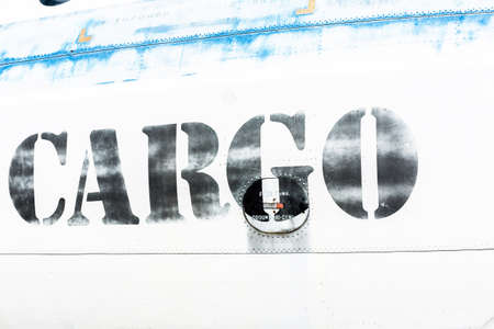 Military transport aircraft and military supplies. The process of unloading and redistributing ammunition and weapons for modern warfare. Military supplies. View from the inside of the cargo aircraft.