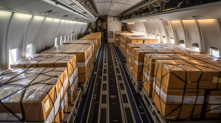 cargo holds inside a commercial airplane, fully loaded, created with generative ai
