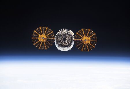 Space satellite in space above the earth. Elements of this image were furnished by NASA for any purpose