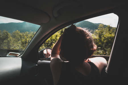 enjoying girl in the car on the road