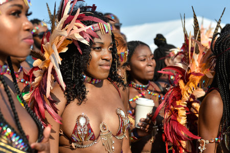 TORONTO, ON, Canada - AUGUST 04: Masqueraders take part in the Toronto Caribbean Carnival Grand Parade at Exhibition Place