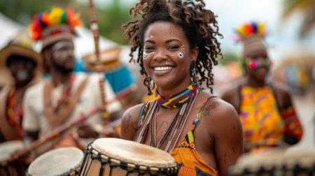 Juneteenth. Black power, black history month concept. vibrant parade through the streets of an American town, with drumming and dancing by people in colorful costumes representing different cultures