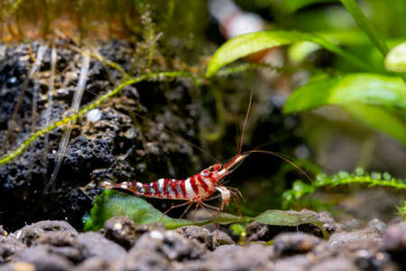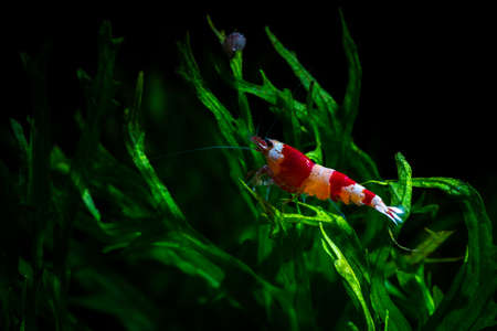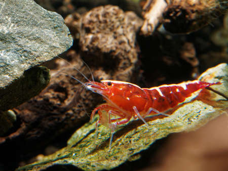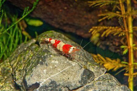 Red crystal shrimp (Caridina cantonensis) in freshwater aquarium