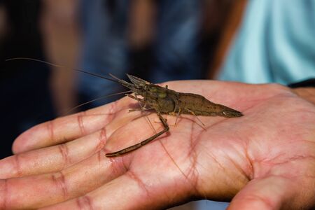 Freshwater shrimp (Lobster) swimming in the aquarium.