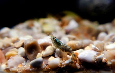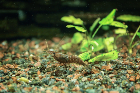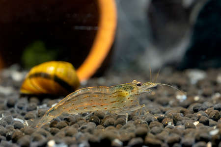 Shrimp in freshwater aquarium. Neocaridina davidi or Rili shrimp.
