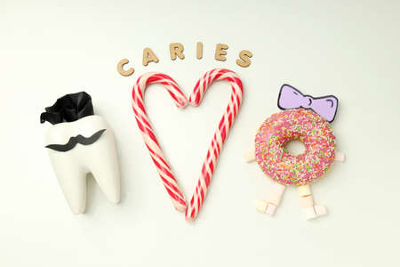 Close-up of mouth on white background,Tooth decay and oral health in children.